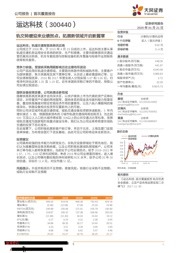 【天风证券】【20200121】运达科技-300440.SZ-轨交转暖迎来业绩拐点,拓展新领域开启新篇章-27页
