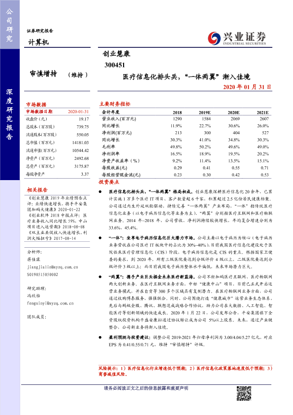 【兴业证券】【20200131】医疗信息化排头兵,“一体两翼”渐入佳境-30页