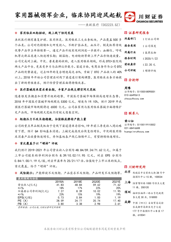 【川财证券】【20200122】鱼跃医疗-002223.SZ-家用器械领军企业,临床协同迎风起航-33页