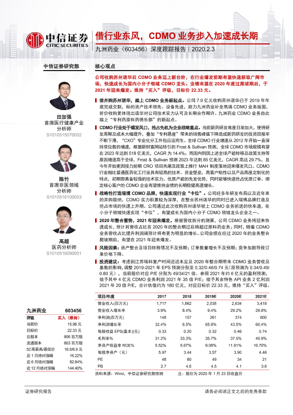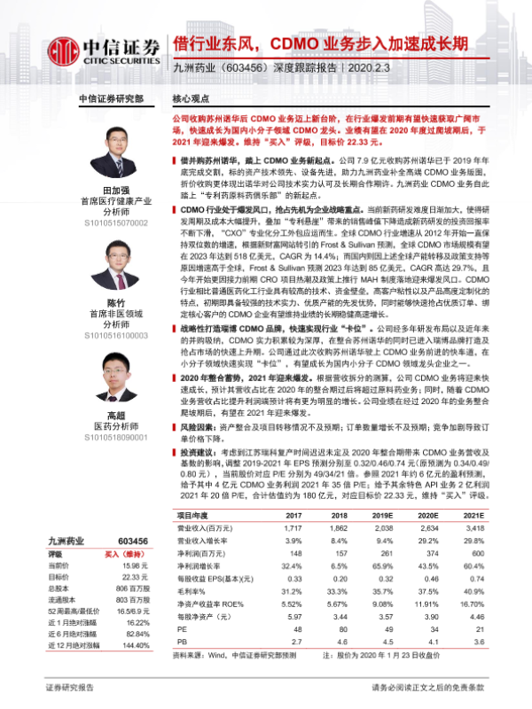 【中信证券】【20200203】20200203-中信证券-九洲药业-603456.SH-深度跟踪报告:借行业东风,CDMO业务步入加速成长期-19页