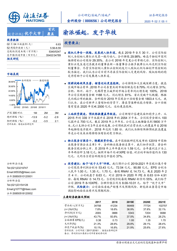 【海通证券】【20200205】20200205-海通证券-金科股份-000656.SZ-公司研究报告:渝派崛起,发于华枝-27页