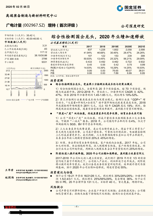 【国金证券】【20200205】综合性检测国企龙头,2020年业绩加速释放-39页