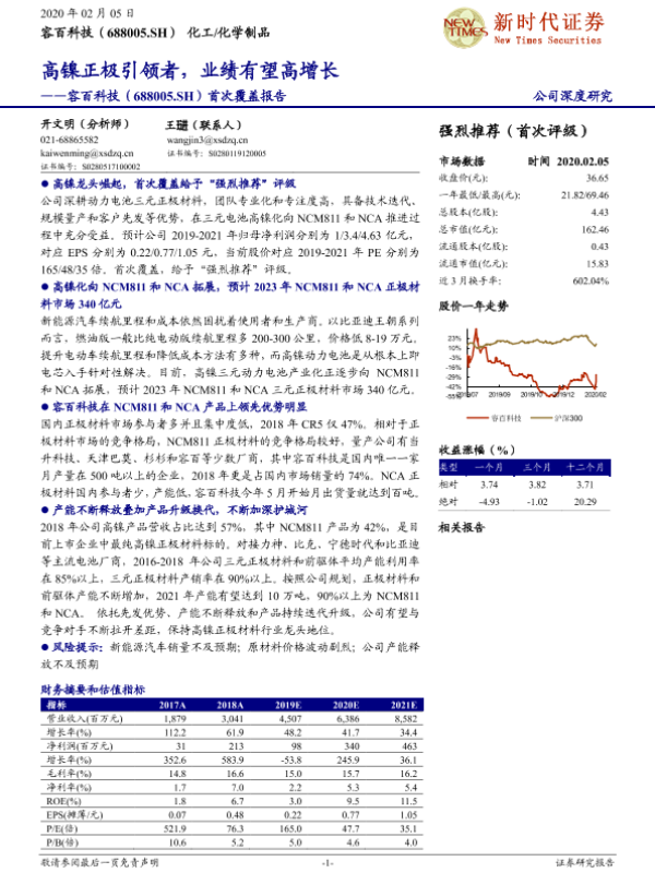 【新时代证券】【20200205】20200205-新时代证券-容百科技-688005.SH-首次覆盖报告:高镍正极引领者,业绩有望高增长-24页