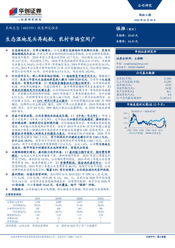 【华创证券】【20200209】20200209-华创证券-东珠生态-603359.SH-深度研究报告:生态湿地龙头再起航,农村市场空间广-17页