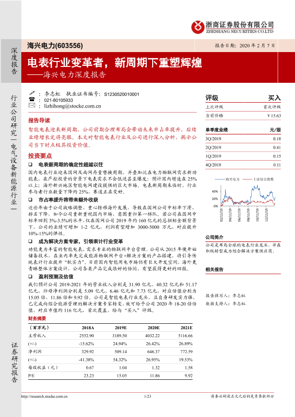 【浙商证券】【20200207】海兴电力深度报告:电表行业变革者,新周期下重塑辉煌-23页