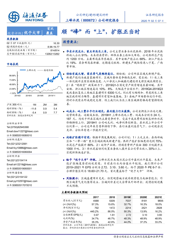 【海通证券】【20200207】上峰水泥-000672.SZ-顺“峰”而“上”,扩张正当时-32页