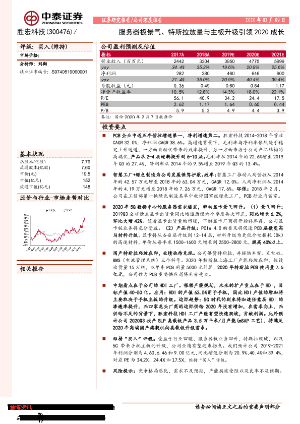 【中泰证券】【20200209】胜宏科技-300476.SZ-服务器板景气、特斯拉放量与主板升级引领2020成长-25页