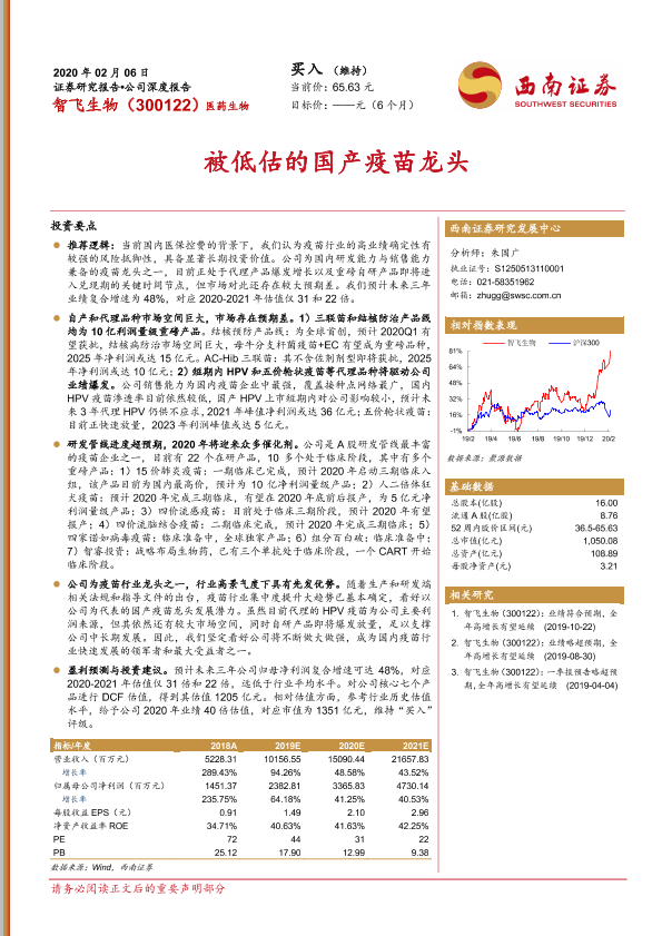 【西南证券】【20200206】20200206-西南证券-智飞生物-300122.SZ-被低估的国产疫苗龙头-48页