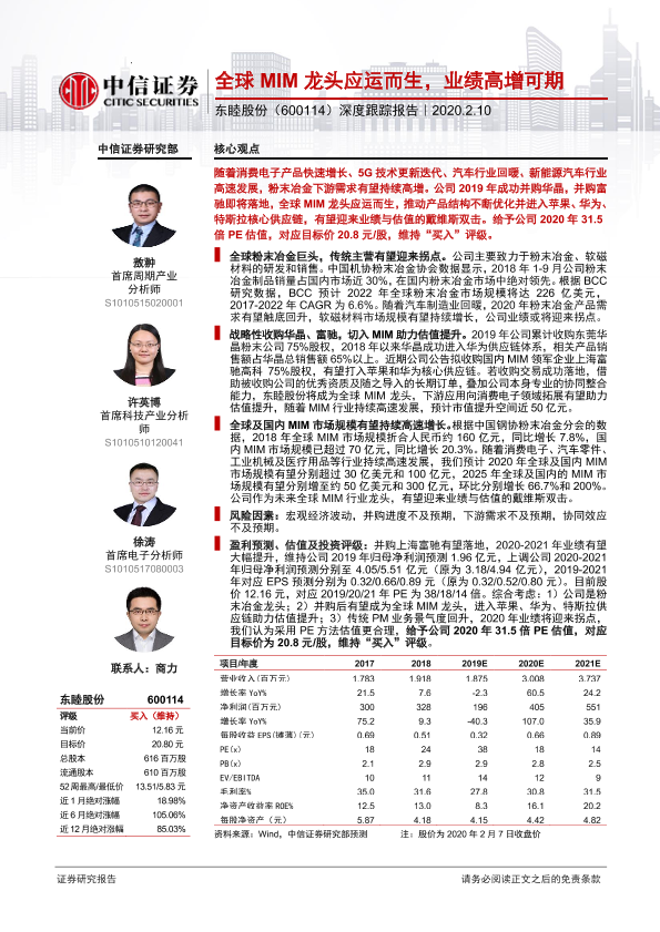 【中信证券】【20200210】20200210-中信证券-东睦股份-600114.SH-深度跟踪报告:全球MIM龙头应运而生,业绩高增可期-27页