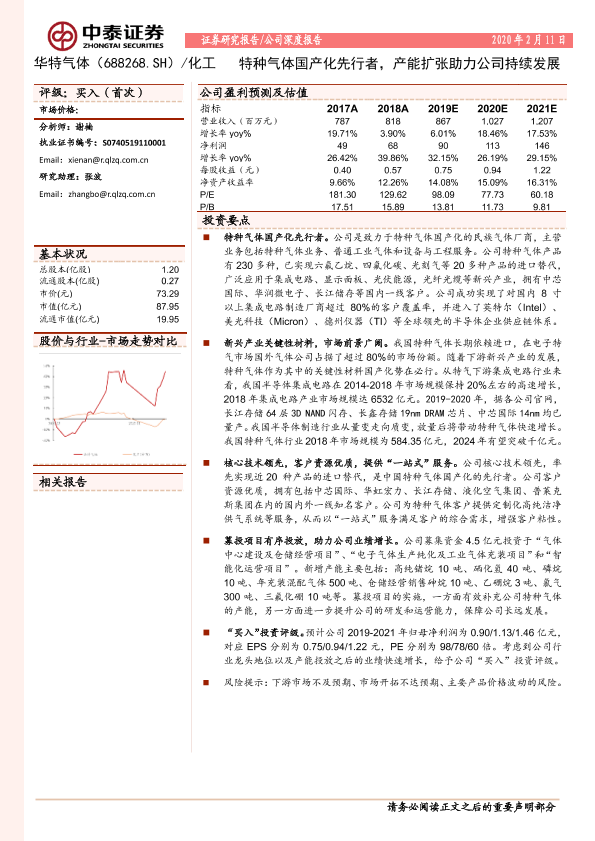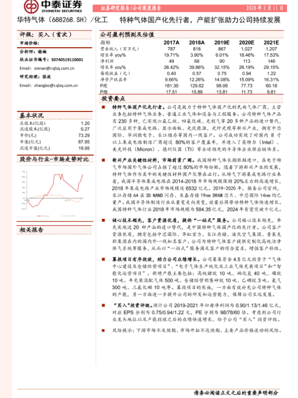 【中泰证券】【20200211】华特气体-688268.SH-特种气体国产化先行者,产能扩张助力公司持续发展-21页