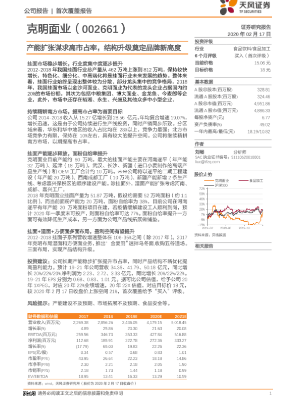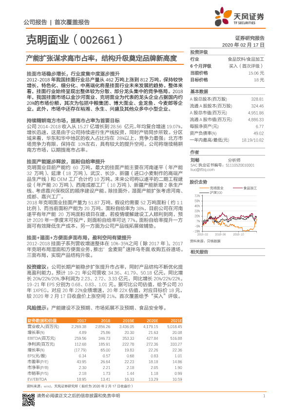 【天风证券】【20200217】克明面业-产能扩张谋求高市占率,结构升级奠定品牌新高度-20页