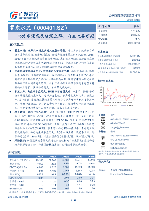 【广发证券】【20200218】20200218-广发证券-冀东水泥-000401.SZ-北方水泥龙头轻装上阵,内生改善可期-42页