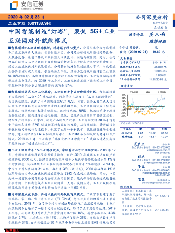 【安信证券】【20200223】中国智能制造“灯塔”,聚焦5G+工业互联网对外赋能模式-33页