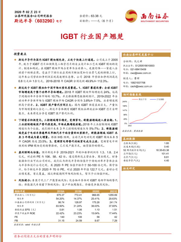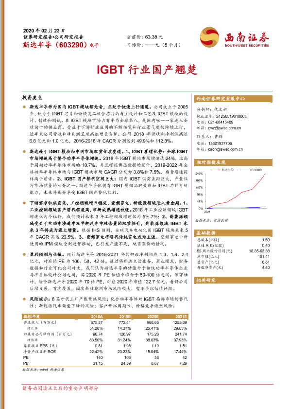 【西南证券】【20200223】斯达半导-IGBT行业国产翘楚-26页