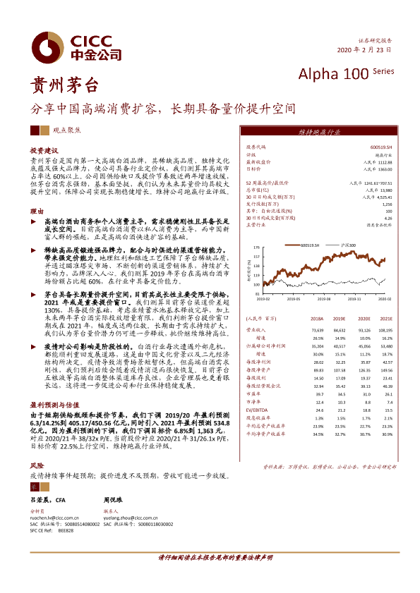 【中金公司】【20200223】贵州茅台-分享中国高端消费扩容,长期具备量价提升空间-27页