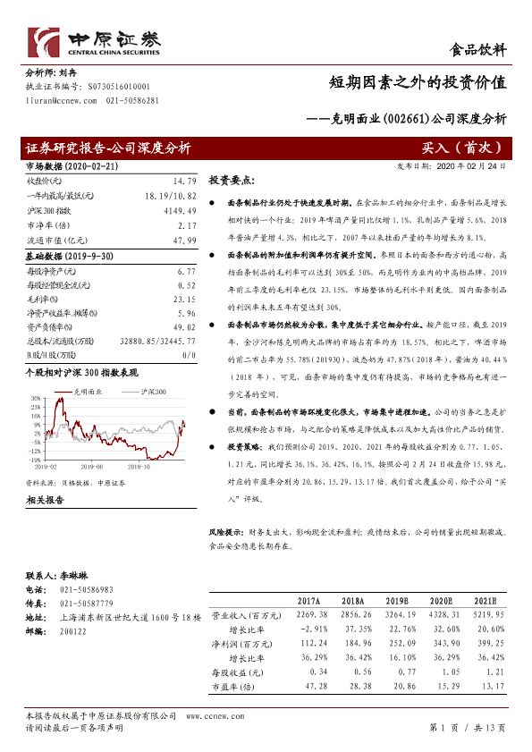 【中原证券】【20200224】短期因素之外的投资价值——克明面业(002661)公司深度分析-13页
