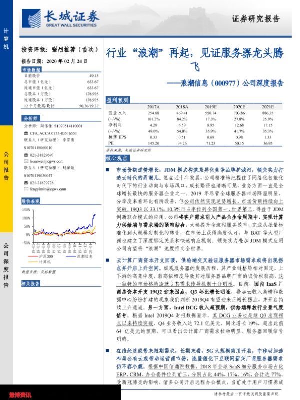 【长城证券】【20200224】20200224-长城证券-浪潮信息-000977.SZ-公司深度报告:行业“浪潮”再起,见证服务器龙头腾飞-33页