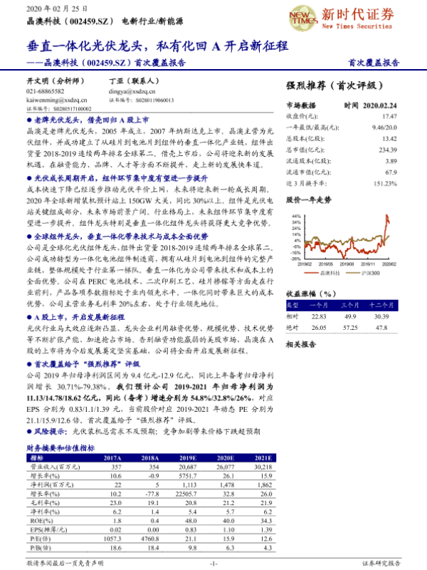 【新时代证券】【20200225】20200225-新时代证券-晶澳科技-002459.SZ-首次覆盖报告:垂直一体化光伏龙头,私有化回A开启新征程-20页