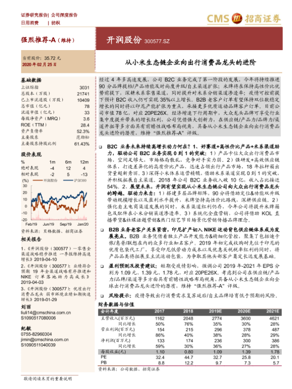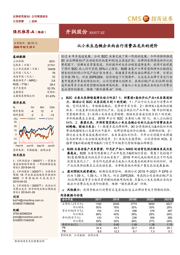 出行消费品 小米生态链 市场分析 开润股份 财务预测