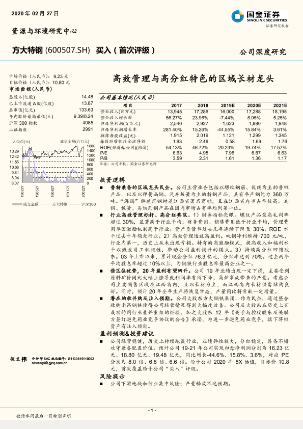 【国金证券】【20200227】20200227-国金证券-方大特钢-600507.SH-高效管理与高分红特色的区域长材龙头-20页