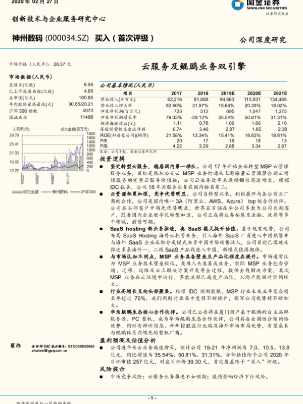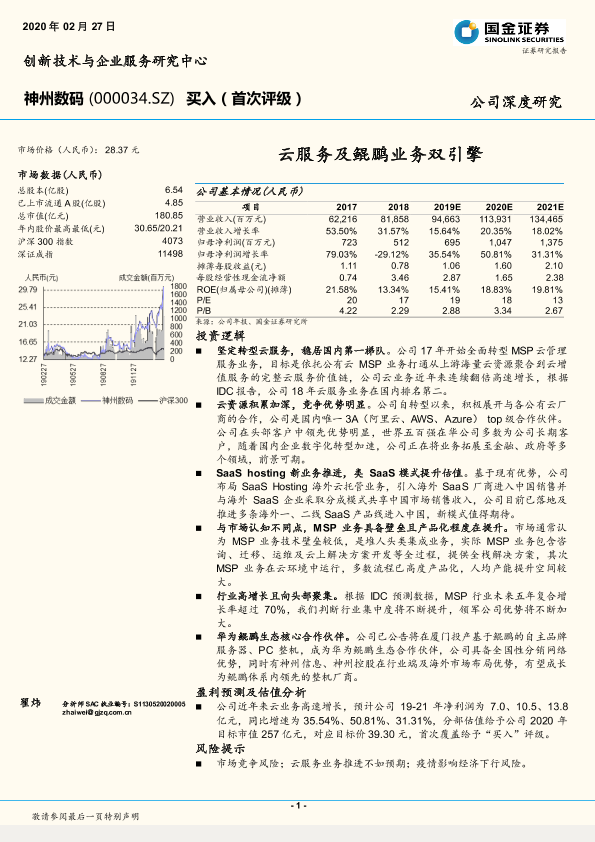 【国金证券】【20200227】20200227-国金证券-神州数码-000034.SZ-云服务及鲲鹏业务双引擎-24页