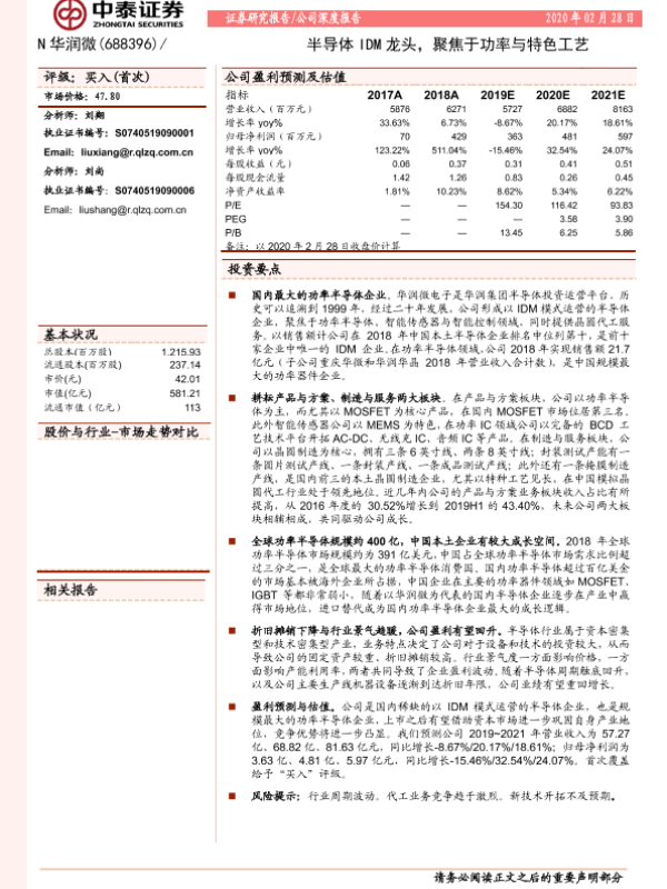 【中泰证券】【20200228】20200228-中泰证券-华润微-688396.SH-半导体IDM龙头,聚焦于功率与特色工艺-24页