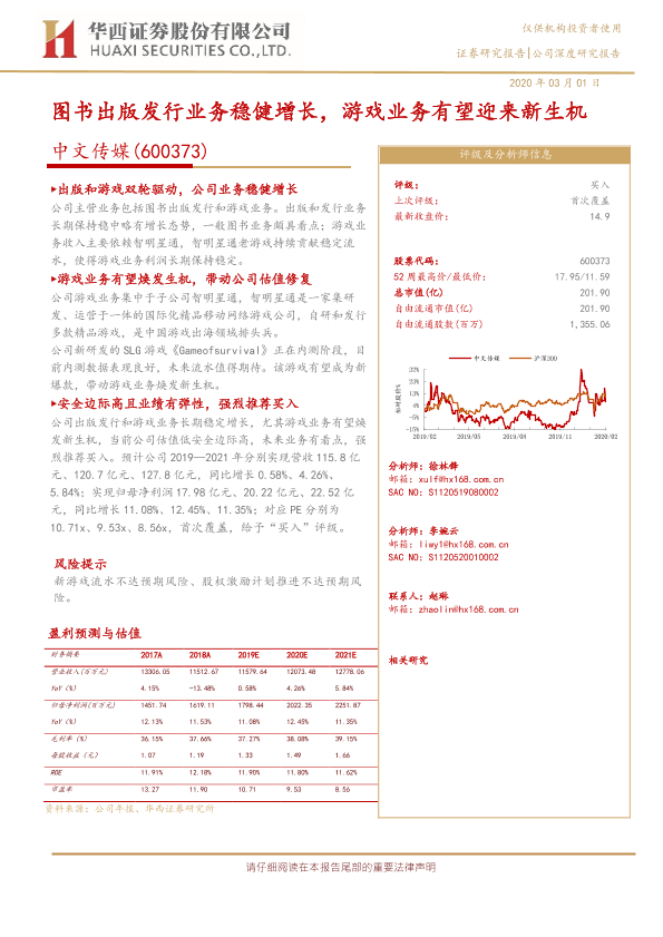 【华西证券】【20200301】20200301-华西证券-中文传媒-600373.SH-图书出版发行业务稳健增长,游戏业务有望迎来新生机-25页