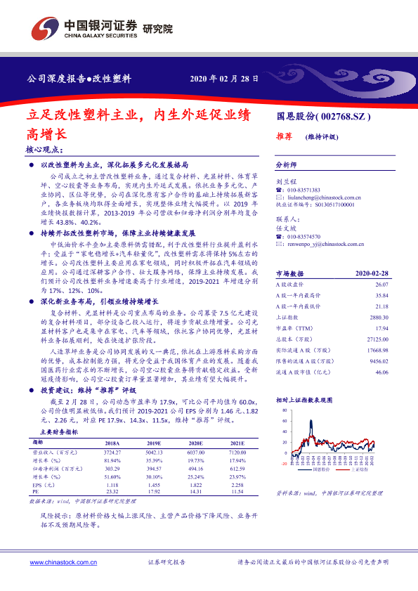 【银河证券】【20200228】立足改性塑料主业,内生外延促业绩高增长-30页