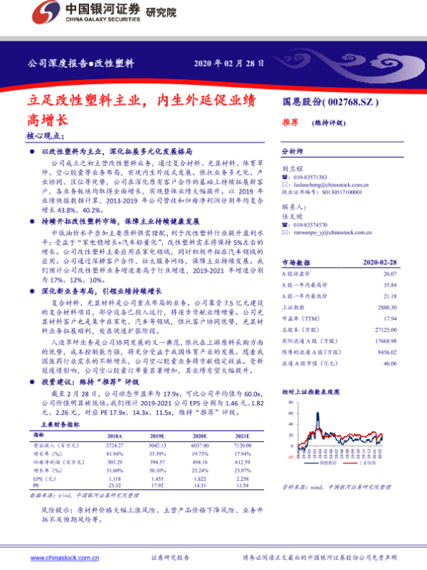 业绩增长 内生外延 国恩股份 多元化发展 改性塑料