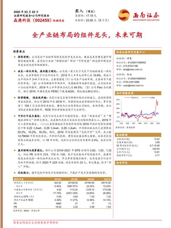 【西南证券】【20200302】全产业链布局的组件龙头,未来可期-21页