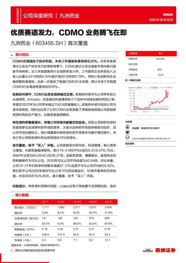 CDMO业务 九洲药业 医药行业 股票分析 首次覆盖