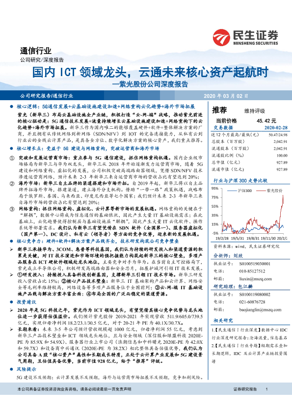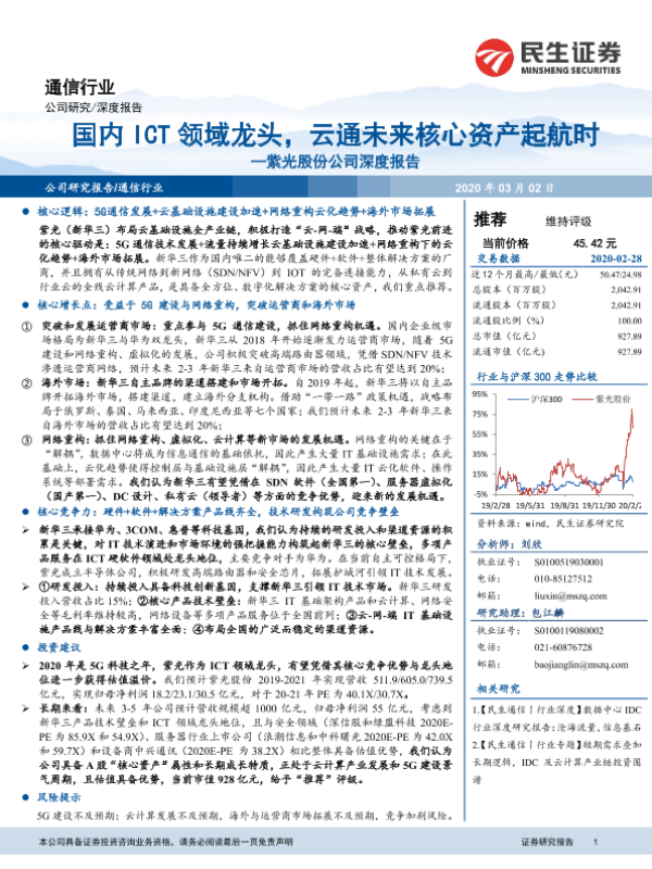 【民生证券】【20200302】紫光股份公司深度报告:国内ICT领域龙头,云通未来核心资产起航时-48页