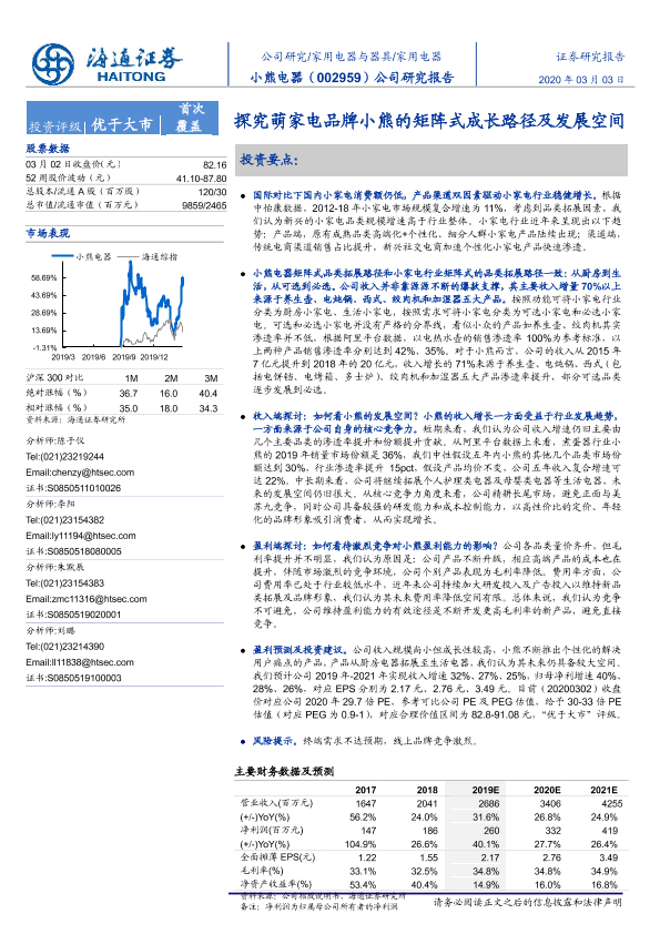 【海通证券】【20200303】探究萌家电品牌小熊的矩阵式成长路径及发展空间-26页