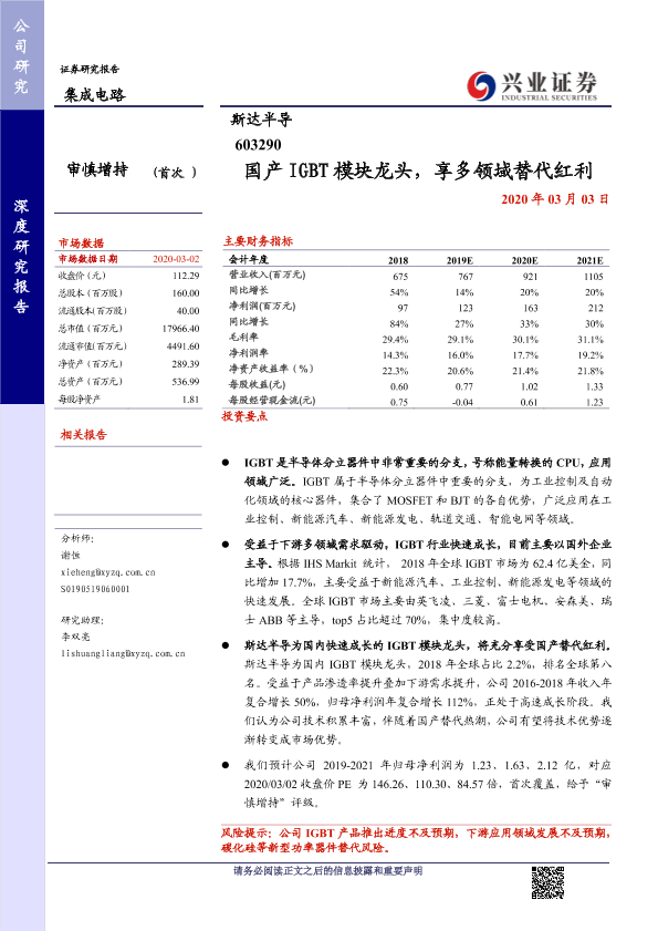 【兴业证券】【20200303】国产IGBT模块龙头,享多领域替代红利-38页