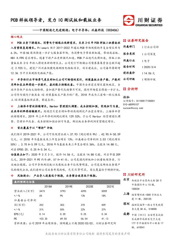 【川财证券】【20200304】PCB样板领导者,发力IC测试板和载板业务-30页