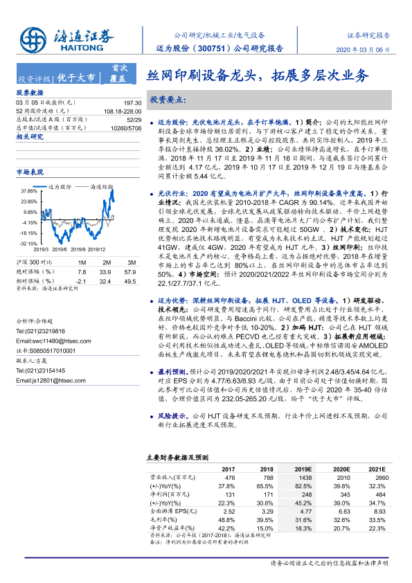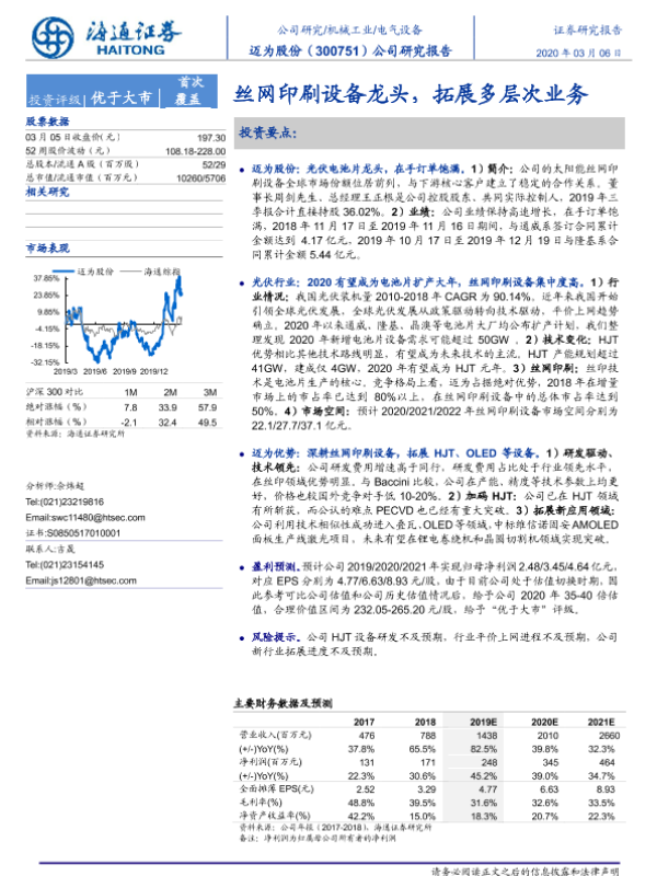 【海通证券】【20200306】20200306-海通证券-迈为股份-300751.SZ-公司研究报告:丝网印刷设备龙头,拓展多层次业务-23页