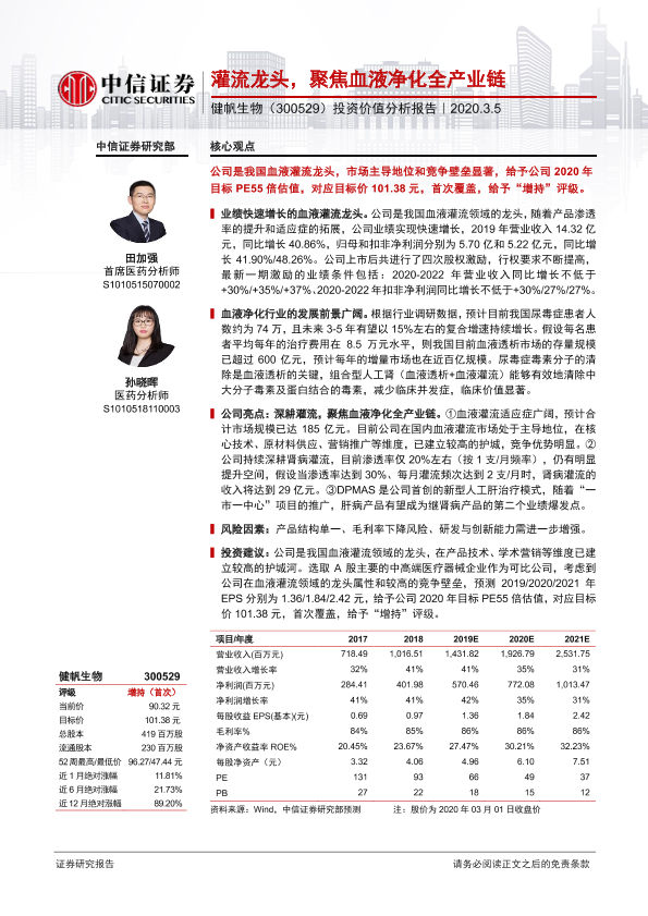 【中信证券】【20200305】20200305-中信证券-健帆生物-300529.SZ-投资价值分析报告:灌流龙头,聚焦血液净化全产业链-29页