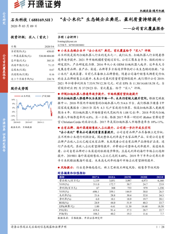 【开源证券】【20200309】石头科技-688169.SH-公司首次覆盖报告:“去小米化”生态链企业典范,盈利质量持续提升-28页