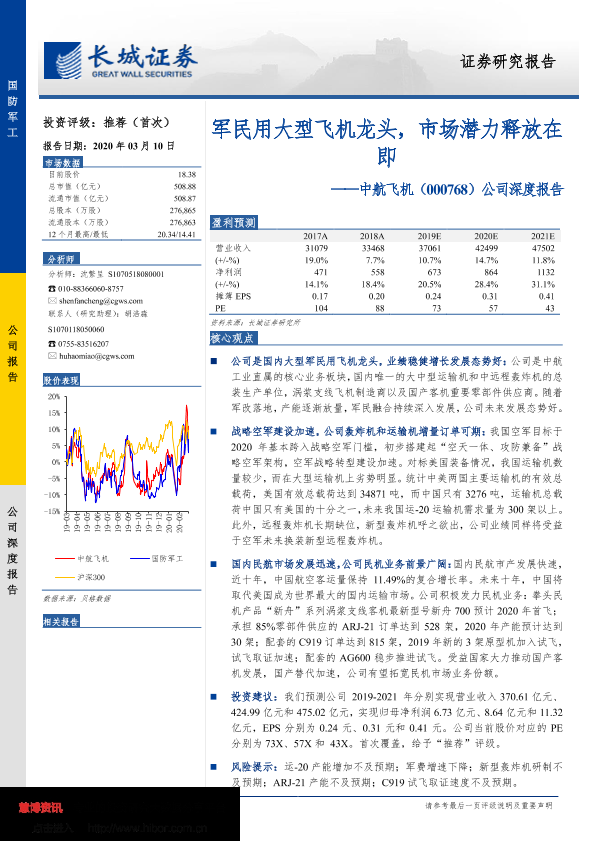 【长城证券】【20200310】20200310-长城证券-中航西飞-000768.SZ-公司深度报告:军民用大型飞机龙头,市场潜力释放在即-28页
