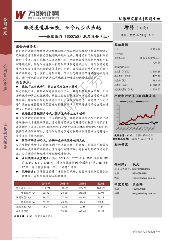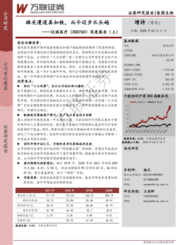 【万联证券】【20200311】雄关漫道真如铁,而今迈步从头越 ——迈瑞医疗(300760)深度报告(上)-23页