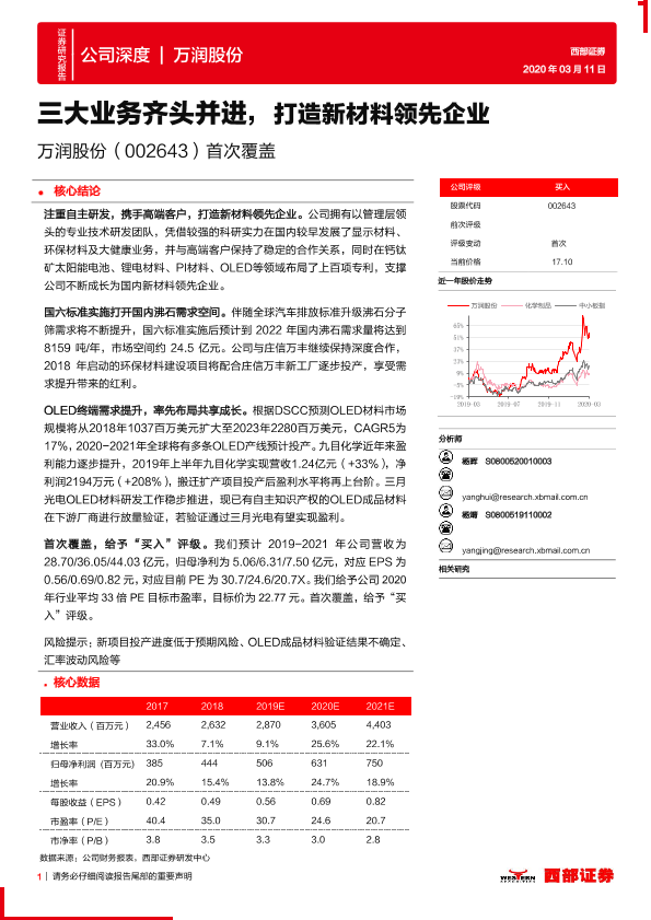 【西部证券】【20200311】20200311-西部证券-万润股份-002643.SZ-首次覆盖:三大业务齐头并进,打造新材料领先企业-26页