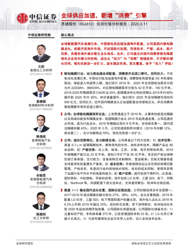 【中信证券】【20200311】20200311-中信证券-恩捷股份-002812.SZ-投资价值分析报告:全球供应加速,新增“消费”引擎-28页
