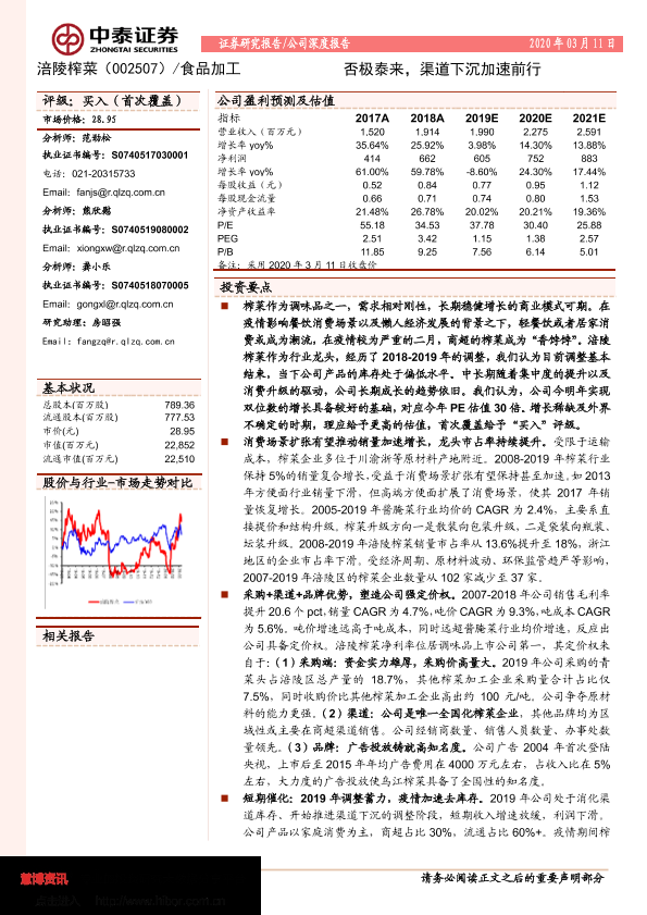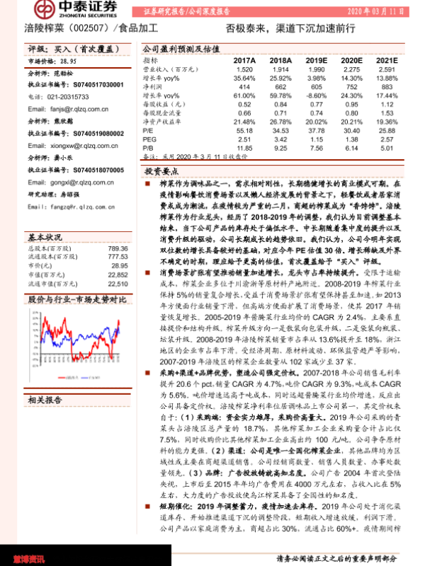 【中泰证券】【20200311】涪陵榨菜-002507.SZ-否极泰来,渠道下沉加速前行-32页