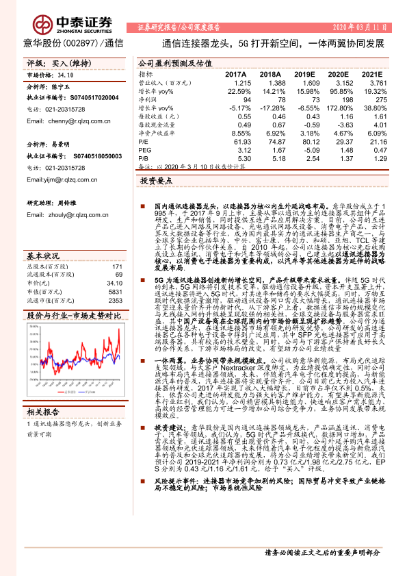 【中泰证券】【20200311】通信连接器龙头,5G打开新空间,一体两翼协同发展-32页