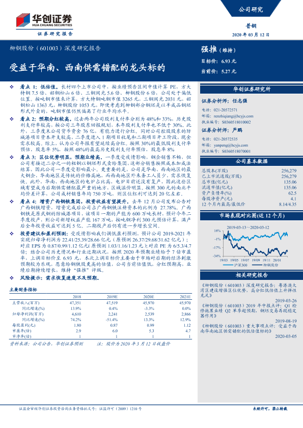 【华创证券】【20200312】20200312-华创证券-柳钢股份-601003.SH-深度研究报告:受益于华南、西南供需错配的龙头标的-19页