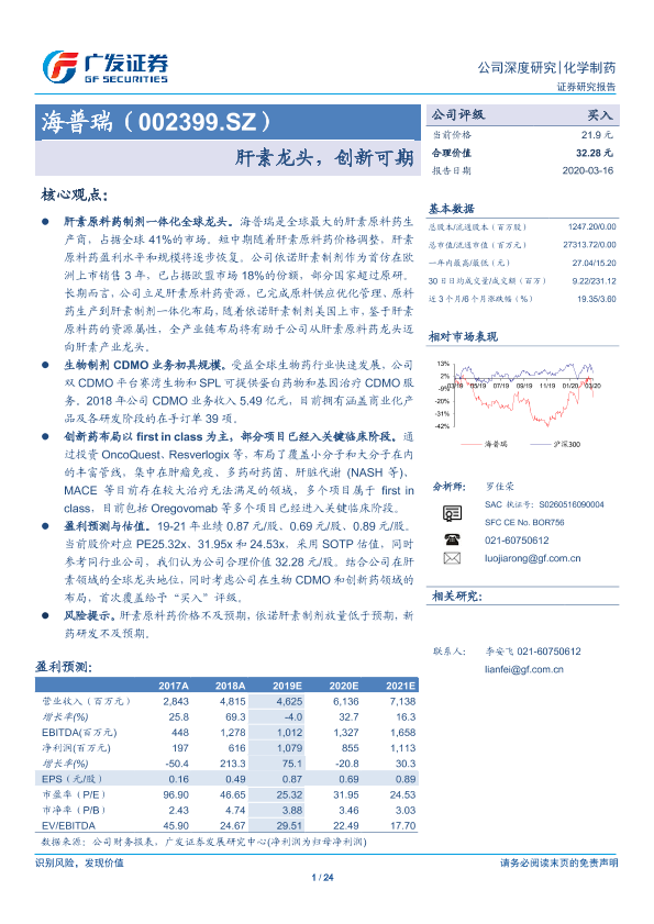 【广发证券】【20200316】20200316-广发证券-海普瑞-002399.SZ-肝素龙头,创新可期-24页