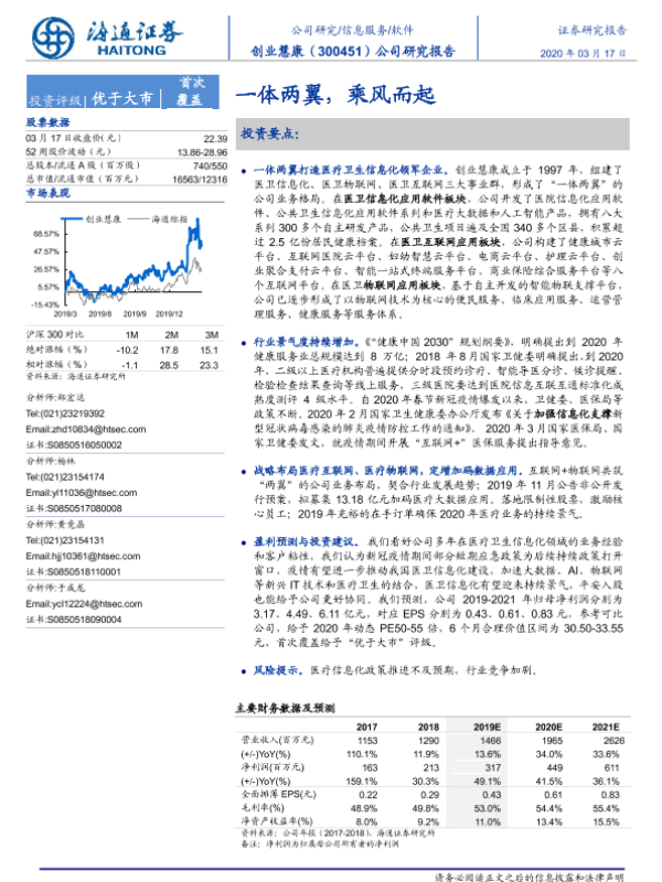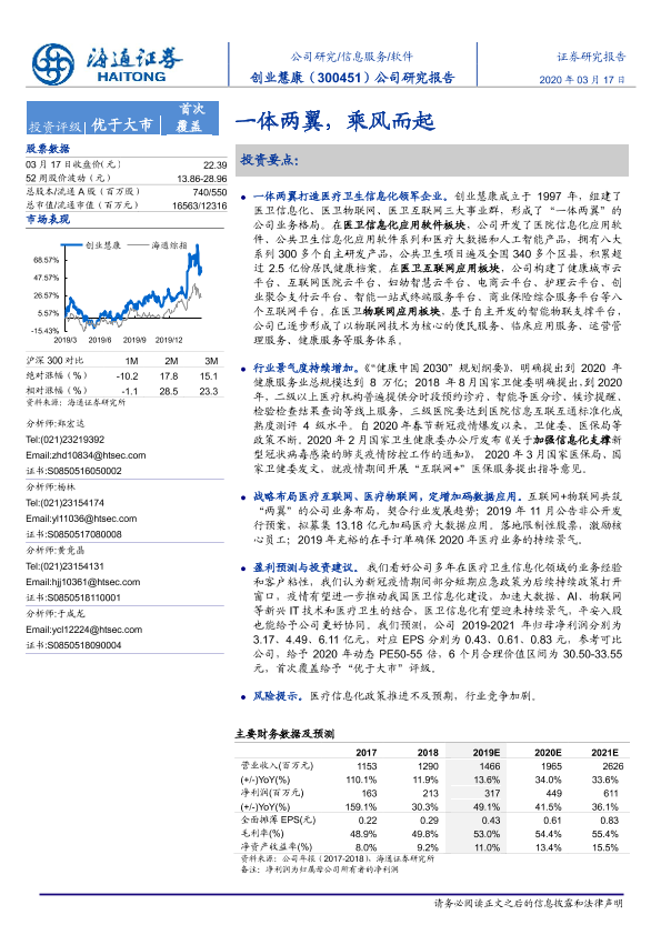 【海通证券】【20200317】20200317-海通证券-创业慧康-300451.SZ-公司研究报告:一体两翼,乘风而起-22页