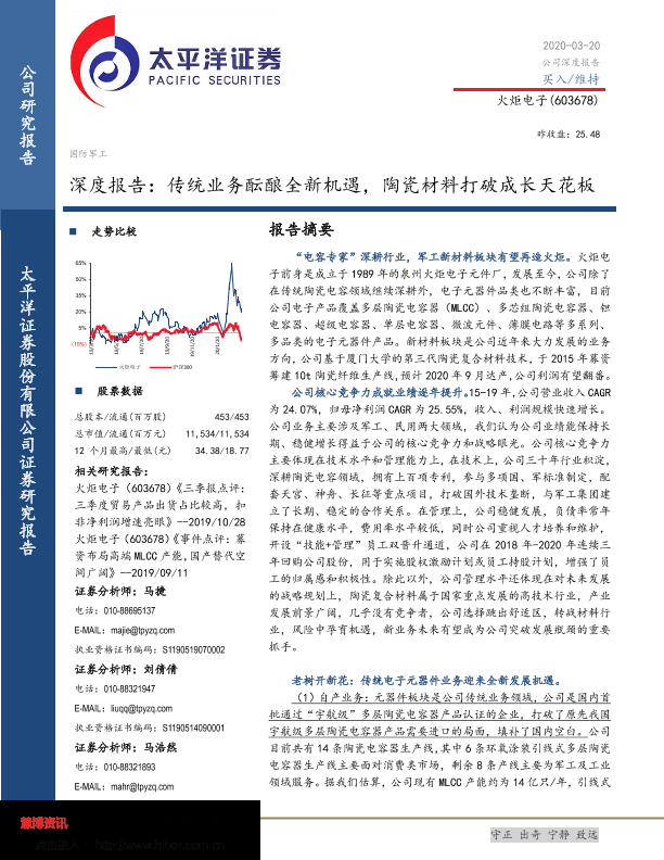 【太平洋证券】【20200320】深度报告:传统业务酝酿全新机遇,陶瓷材料打破成长天花板-49页