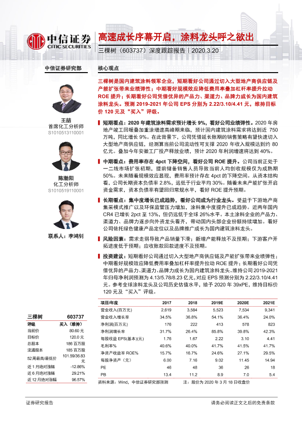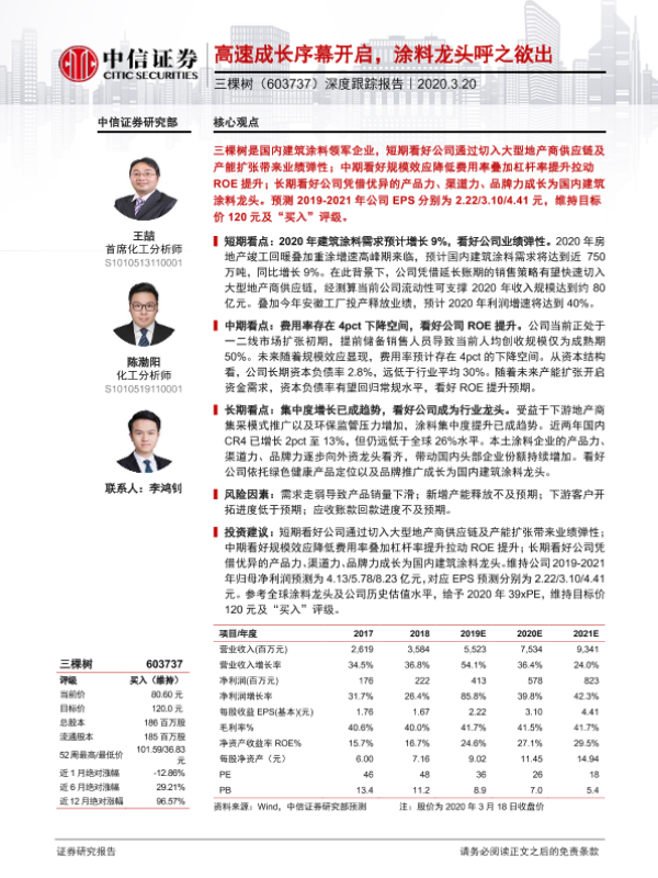 【中信证券】【20200320】20200320-中信证券-三棵树-603737.SH-深度跟踪报告:高速成长序幕开启,涂料龙头呼之欲出-35页