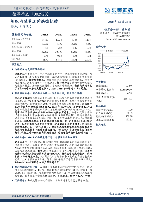 【东吴证券】【20200320】20200320-东吴证券-德赛西威-002920.SZ-智能网联赛道稀缺性标的-21页
